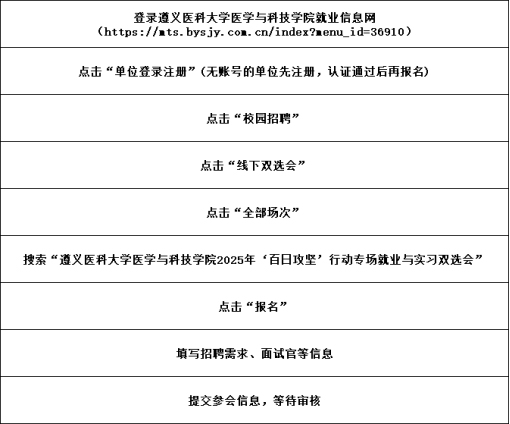 1、報名成功后,貴單位招聘信息將掛遵義醫(yī)科大學(xué)醫(yī)學(xué)與科技學(xué)院就業(yè)信息網(wǎng)進(jìn)行精準(zhǔn)宣傳;